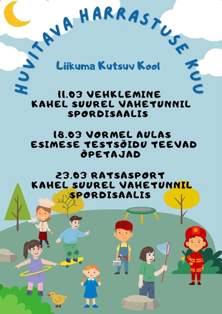 Eesti keele nädal Loomise kuupäev 09.03.2026 Autor Maret Jaks Eesti Vabariigi aastapäeva tähistamine Loomise kuupäev 18.02.2026 Autor Maret Jaks 112 päev Loomise kuupäev 12.02.2026 Autor Maret Jaks Koolispordi võrkpall Loomise kuupäev 10.02.2026 Autor Maret Jaks Vaata rohkem